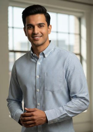 Embrace timeless fashion with the ZAMAA Striped Oxford Cotton Shirt. This piece effortlessly blends classic style with all-day comfort, making it a versatile essential for your wardrobe.