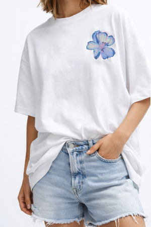 Oversized Floral Graphic T-Shirt – White